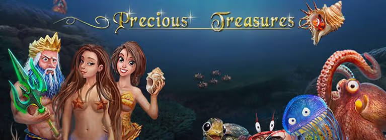 Precious Treasures Slots drops you into a fantasy seascape where every spin feels like a hunt for hidden riches. With shimmering sea creatures, mythic icons, and a treasure-filled vibe on every reel, this 5-reel video slot keeps the momentum high while giving you plenty of room to chase bigger payouts. If you like games that balance steady base-game action with a clear bonus target, this one is built to keep you spinning.